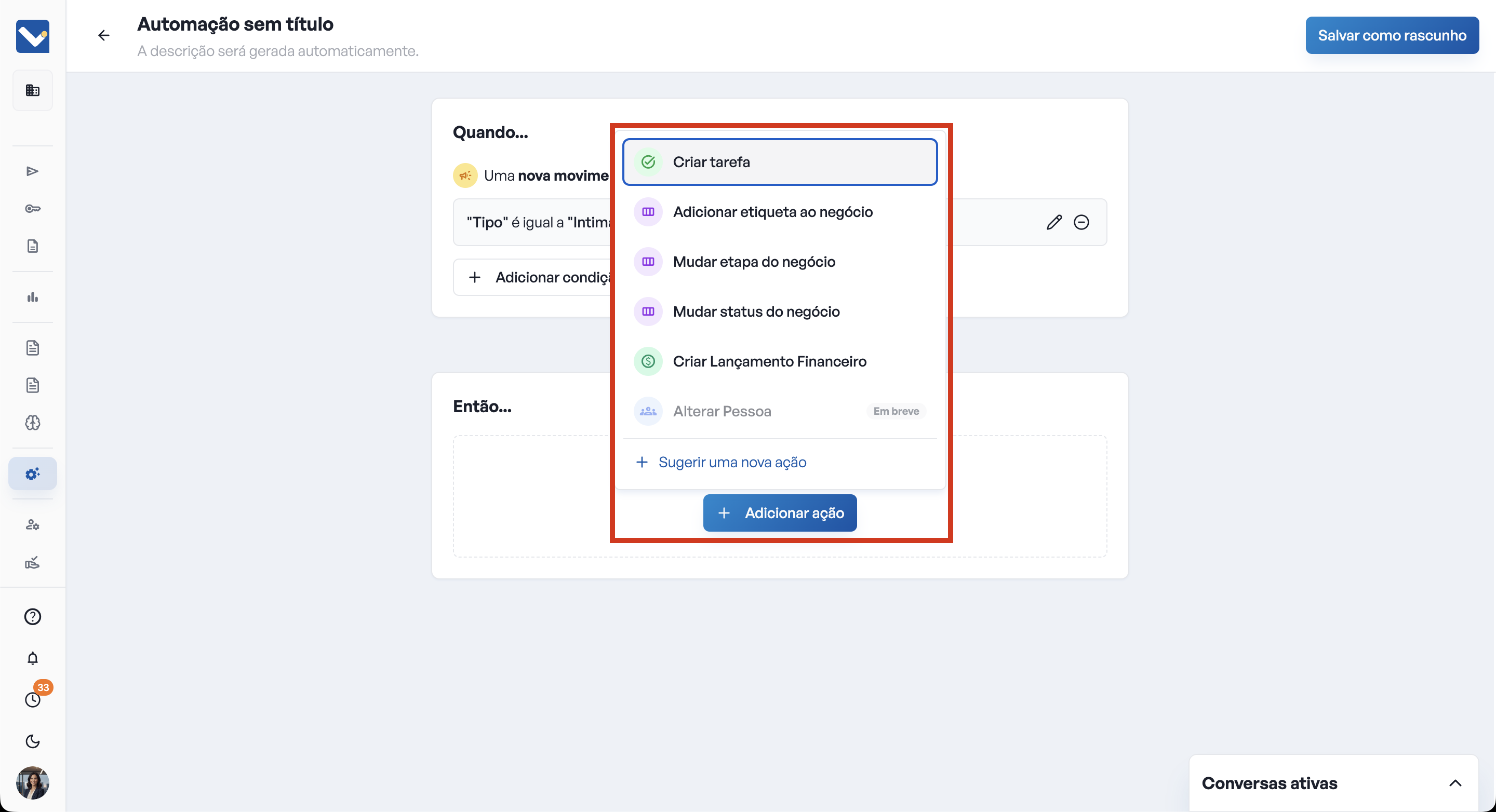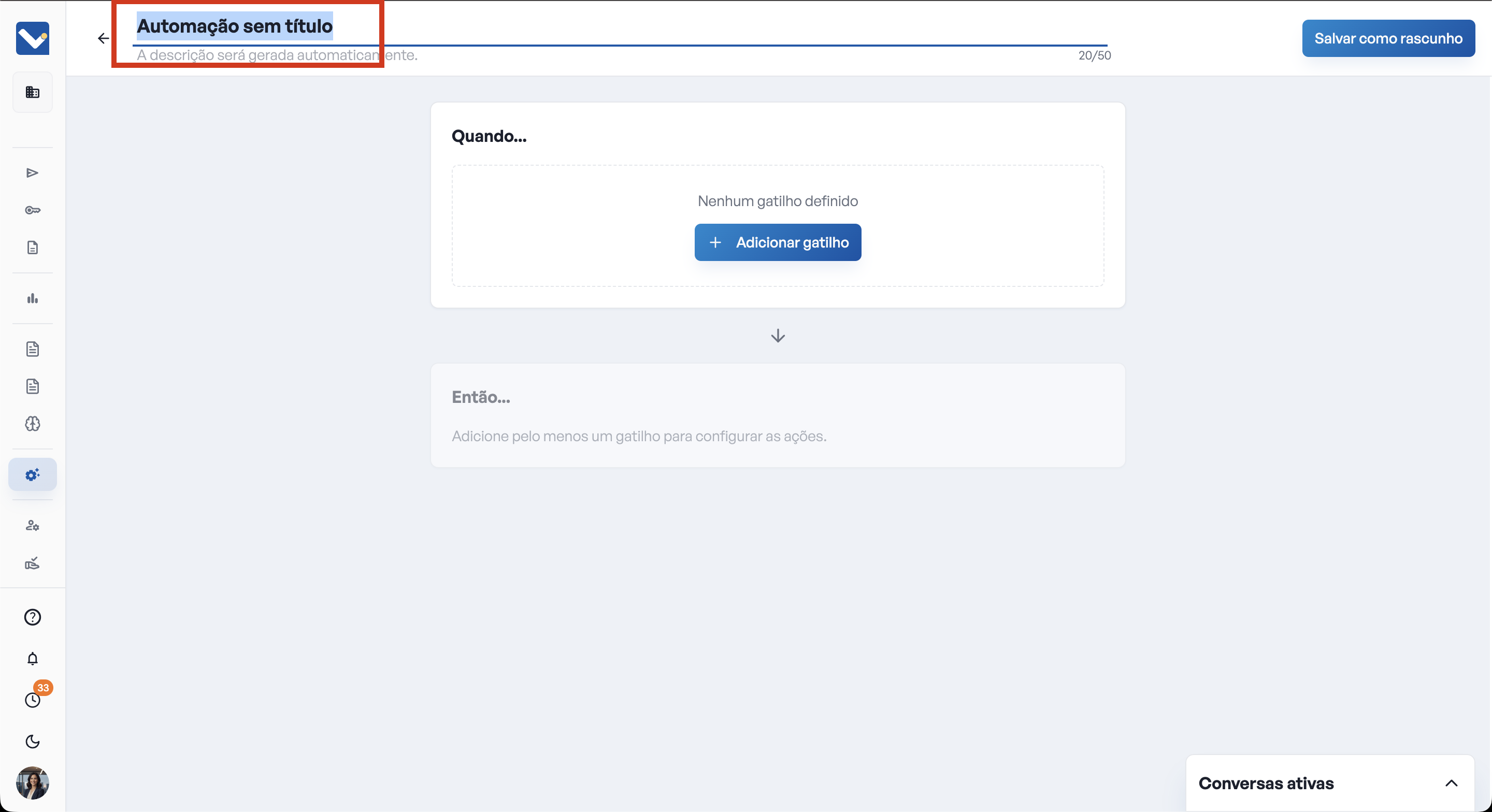 Obs.: Se a automação estiver incompleta, você poderá Salvar como Rascunho para finalizar em outro momento.