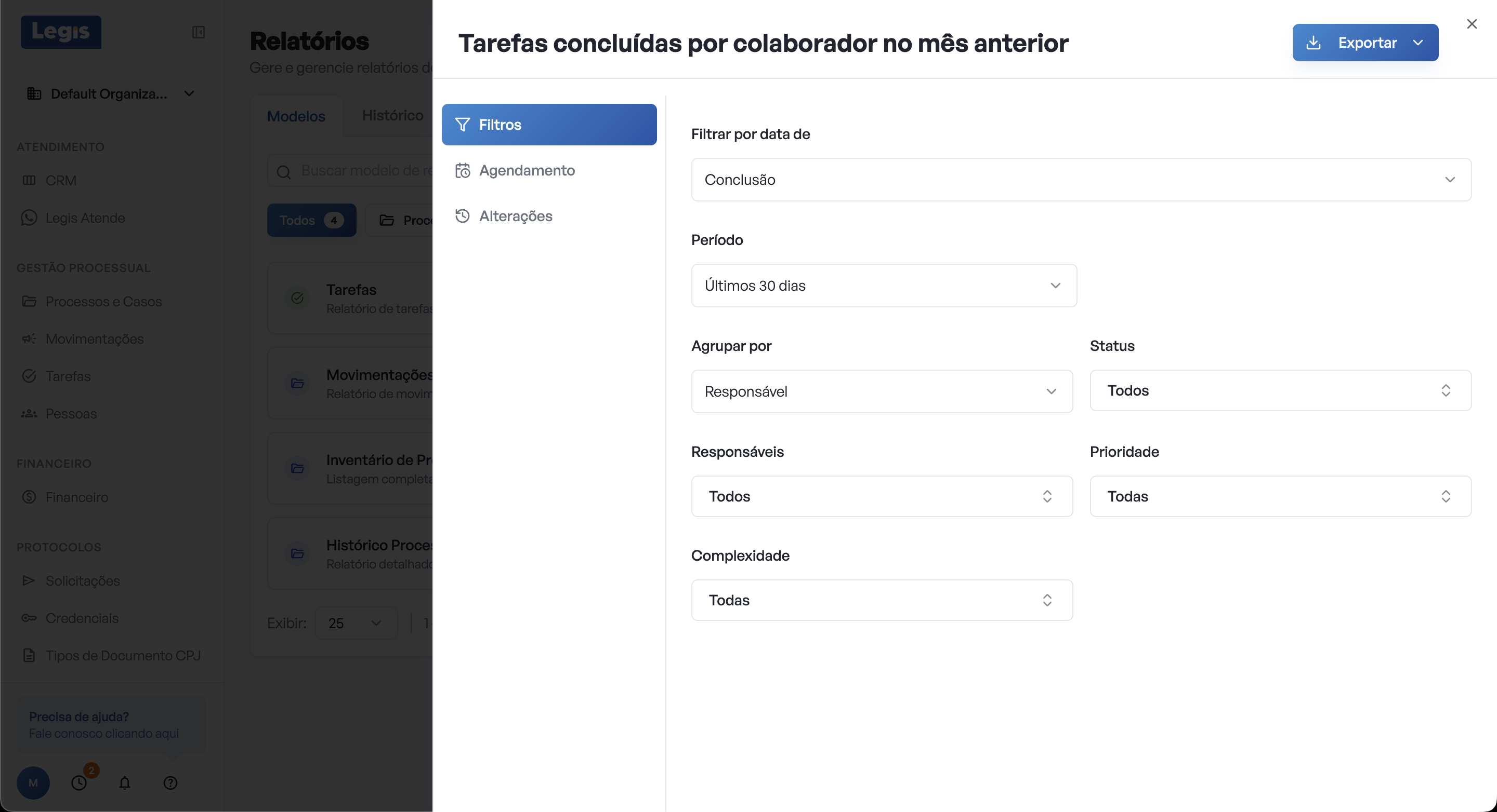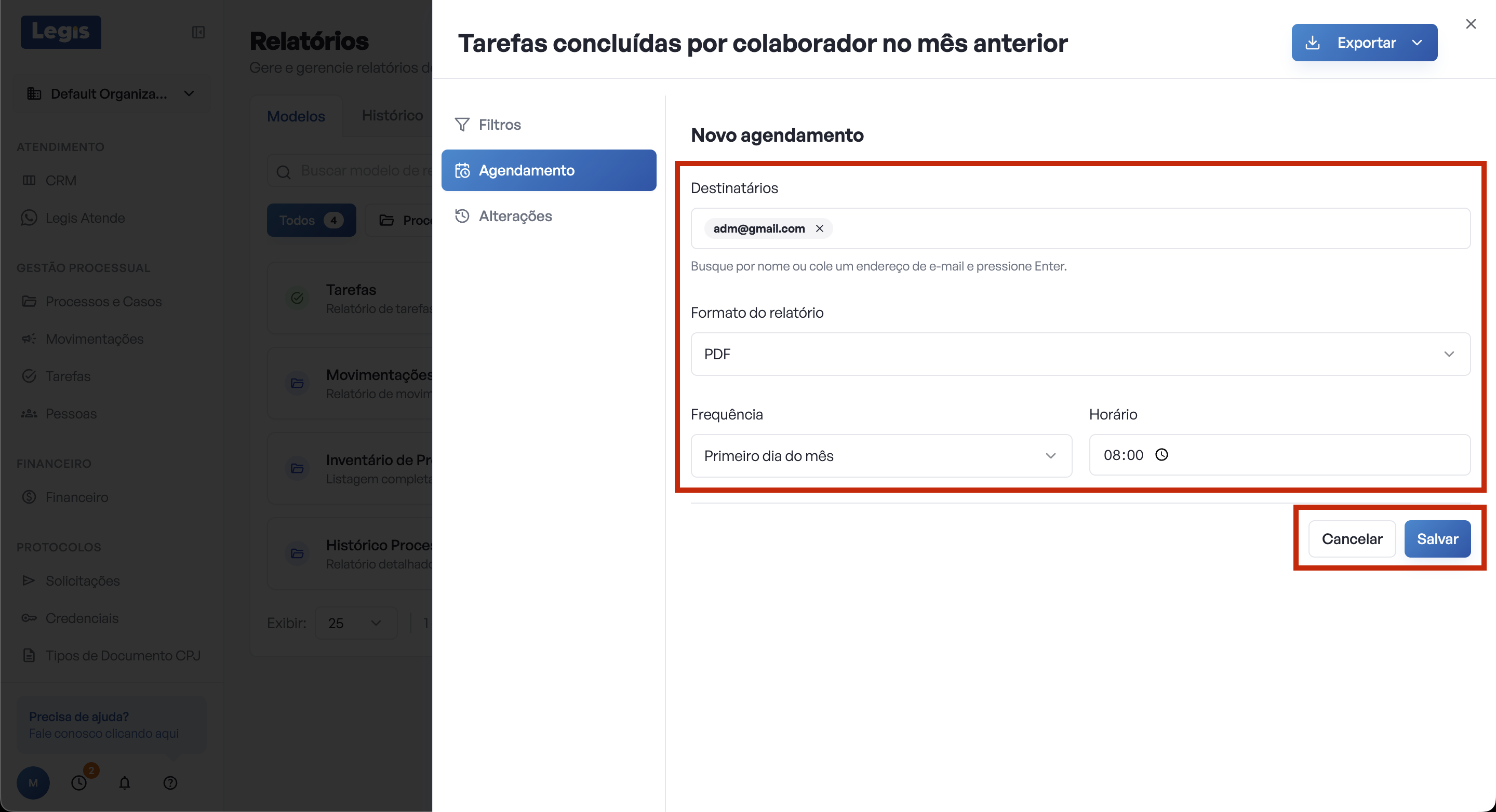 Acompanhe o passo a passo da criação de um relatório de tarefas concluídas no mês anterior, separado por colaborador, agendado para chegar no e-mail do administrador todo primeiro dia do mês.